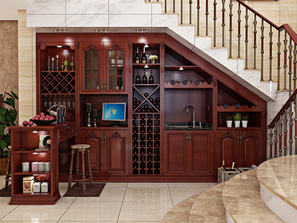 使用客厅与楼梯间的不规则空间,打造一处休闲吃苦之所。深红色樱桃木带来实木的光泽与质感,酒柜衔接吧台规划,柜体内部结构布局合理,能够很好的满意多种酒类的藏储。吧台一侧预留敞开柜,便利物品的拿取。这样的客厅酒柜规划,是不是将整个家提升了一个层次呢。