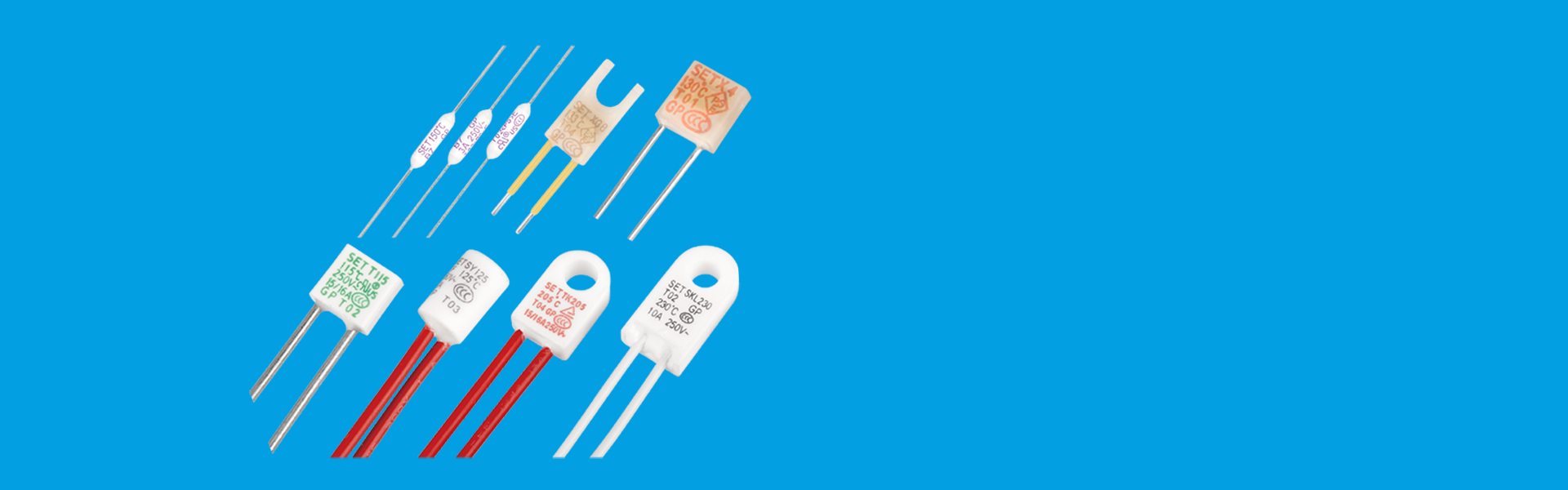 额定工作电流 Ir : (1 ~ 200) A / 额定工作电压 Ur : (125 ~ 800) VAC / 额定动作温度 Tf : (76 ~ 230)°C